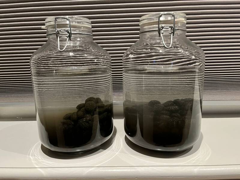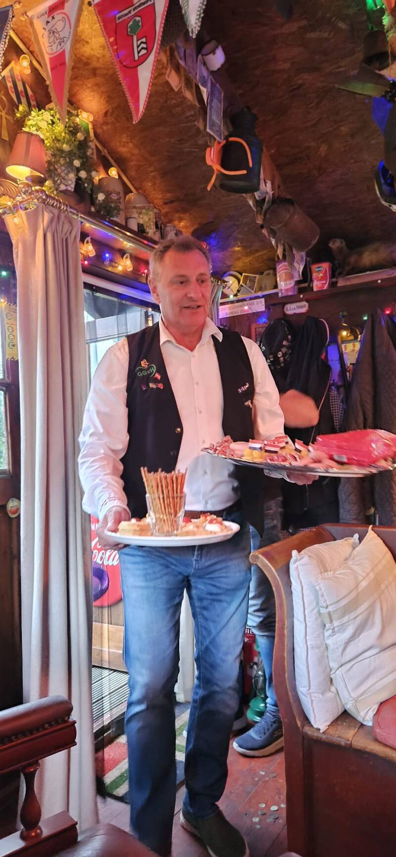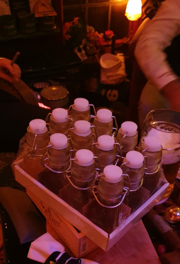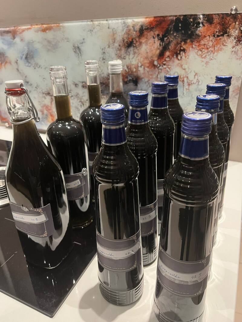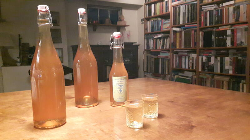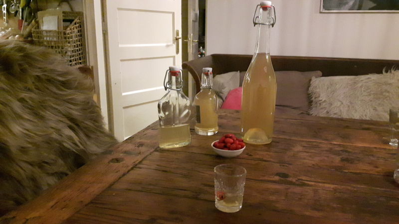 Na de copieuze maaltijden, wordt meestentijds een zelfgemaakte likeur genuttigd. In dit geval betreft het een Perenlikeur van bottelaar heer Roland.