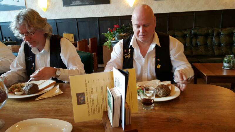 De nestor en vice-nestor maken aanstalten om de overheerlijke en bestempeld als "de beste gehaktballen van het westelijk halfrond" te verorberen.