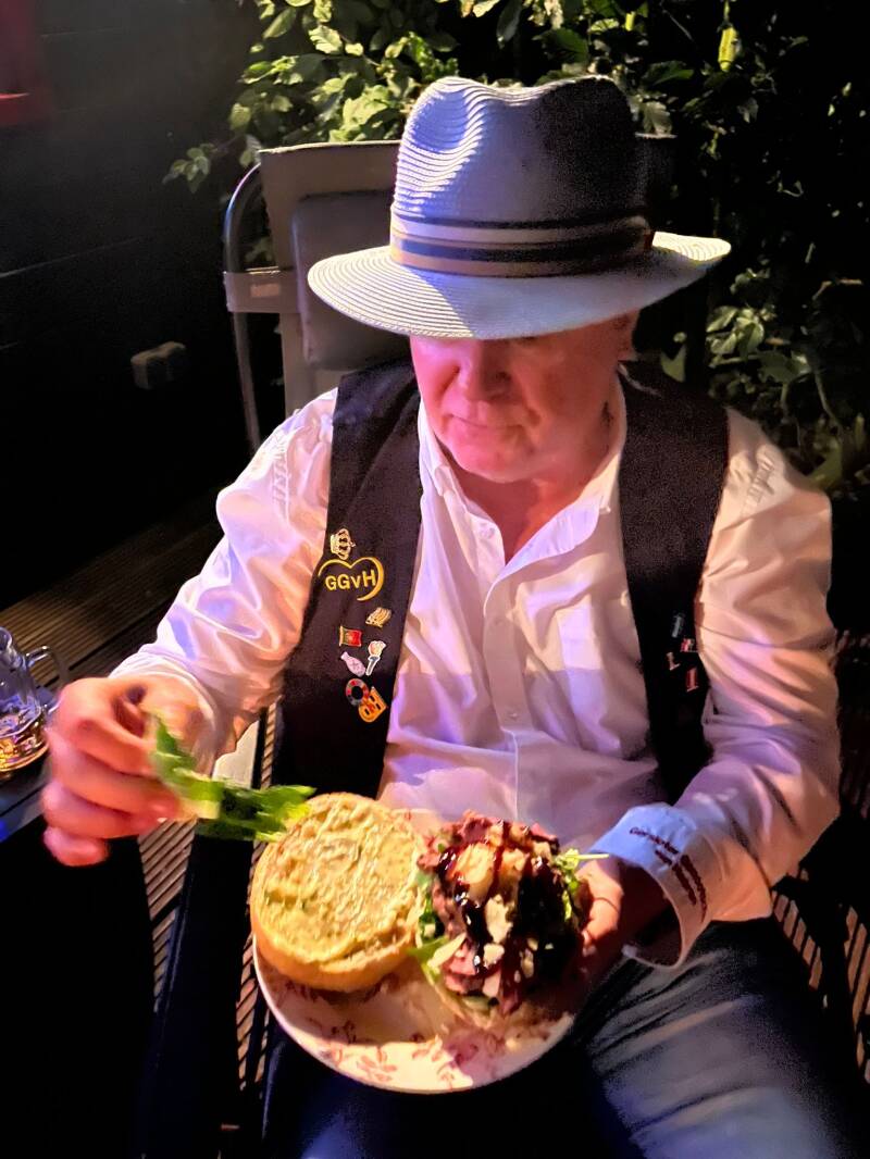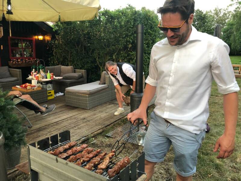 zomer 2023 heer Klaas gastheer GGvH tuinparty met overheerlijke Indische gerechten.