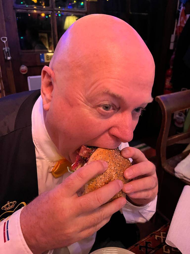 heer Sido laat zich het broodje Hompie Trompie goed smaken....